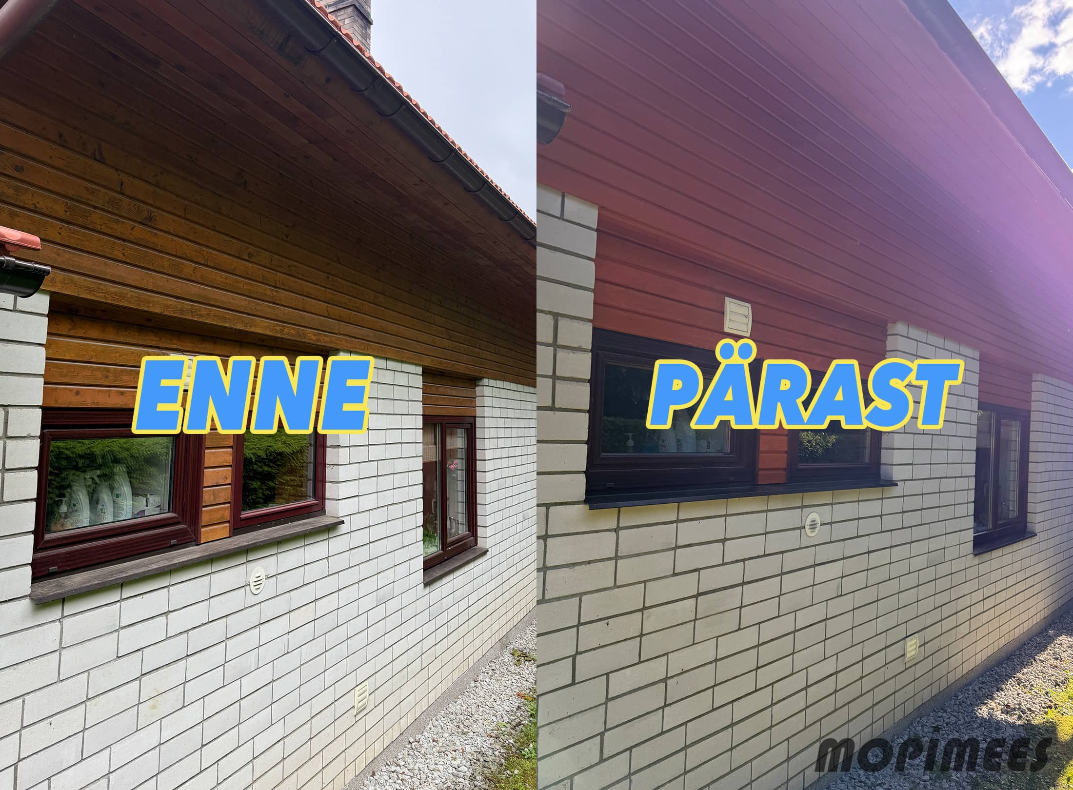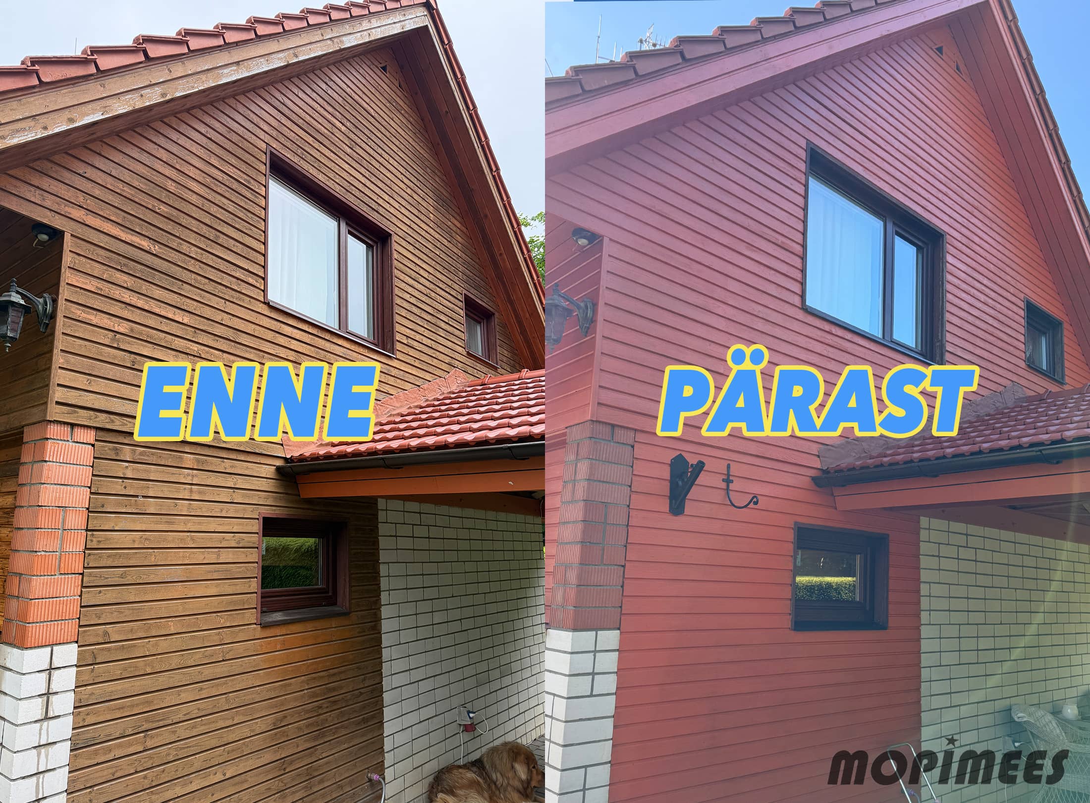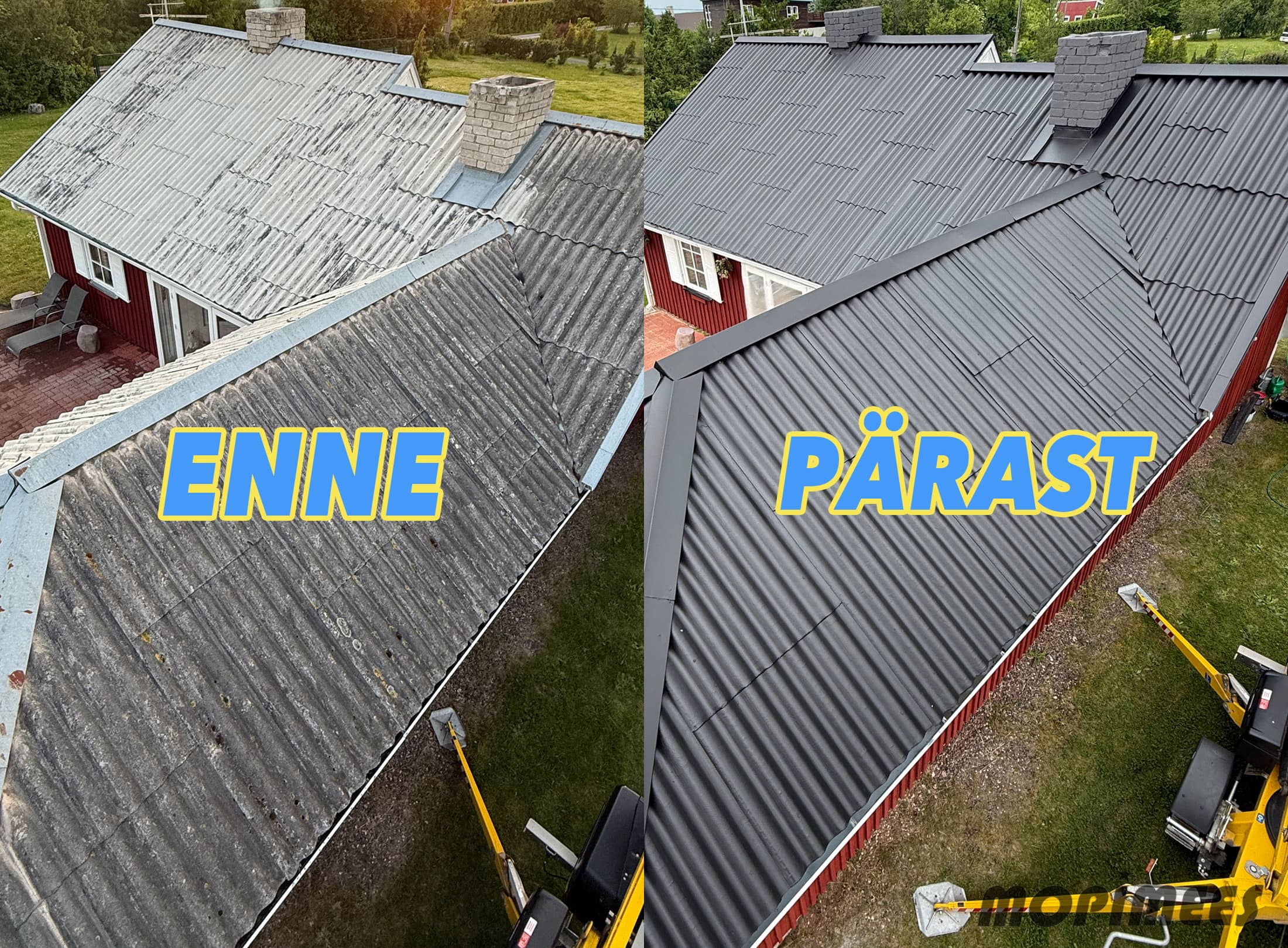 Peale puhastamist alustasime kõnnitee töötlemist sambla kasvu takistava kaitsetöötlusega. Kasutame vahendit mis ei ole mürgine ega sisalda allergeene. See on oluline keskkonna- ja tervisesõbraliku teenuse pakkumisel. Kuna hooldekodu asub kaunite mändide all kus sammaldumine toimub kiirelt ning tellija tahab puhastatud pinda hoida samblavabana võimalikult pikalt, soovitasime meie tootevalikust sambla kasvu takistavat töötlust. Selle töötluse tellivad ka paljud erakliendid kes ei soovi kohe peale puhastust samblaga võitlema hakata.